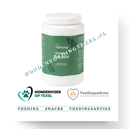 Bokashi betekend ‘Goed organisch gefermenteerd materiaal’. Het is een Japanse techniek waarbij je keuken- en tuinafval laat fermenteren. Zonder zuurstof en bij een lage temperatuur, zodat alle voedingsstoffen bewaard blijven. Tijdens de fermentatie worden de voedingsstoffen makkelijk beschikbaar gemaakt voor opname in het spijsverteringssysteem, samen met de positieve micro-organismen vormen ze een pro- en prebiotische voeding die er voor zorgt dat ook de rest van de voeding beter opgenomen kan worden. Voordelen * Verbeterd de balans van maag en darmflora * inzetbaar bij eten van modder of poep * inzetbaar bij het eten van straat * Positief effect op vachtconditie * positief effect op de vitaliteit * positief effect op de eetlust * positief effect op de ontlasting (zowel bij diarree als bij obstipatie) * makkelijk te doseren * wordt graag gegeten (op een uitzondering na) * schoon alternatief voor vuile pens * het kan gebruikt worden bij rauwe vleesvoeding en bij brokvoeding * Geschikt voor pups, volwassen en senior honden * Voor zieke en allergische honden * Ter ondersteuning na antibiotica * Ter ondersteuning tijdens en na Giardia * Wissel gedurende het jaar tussen de verschillende soorten Bokashi Combinatie Bokashi en Veendrenkstof Voor een optimaal resultaat geef je Bokashi samen met Veendrenkstof. Deze beide producten versterken elkaars werking. De Bokashi brengt balans in maag en darmflora. Veendrenkstof zorgt voor een optimale conditie van de maag- en darmwand.